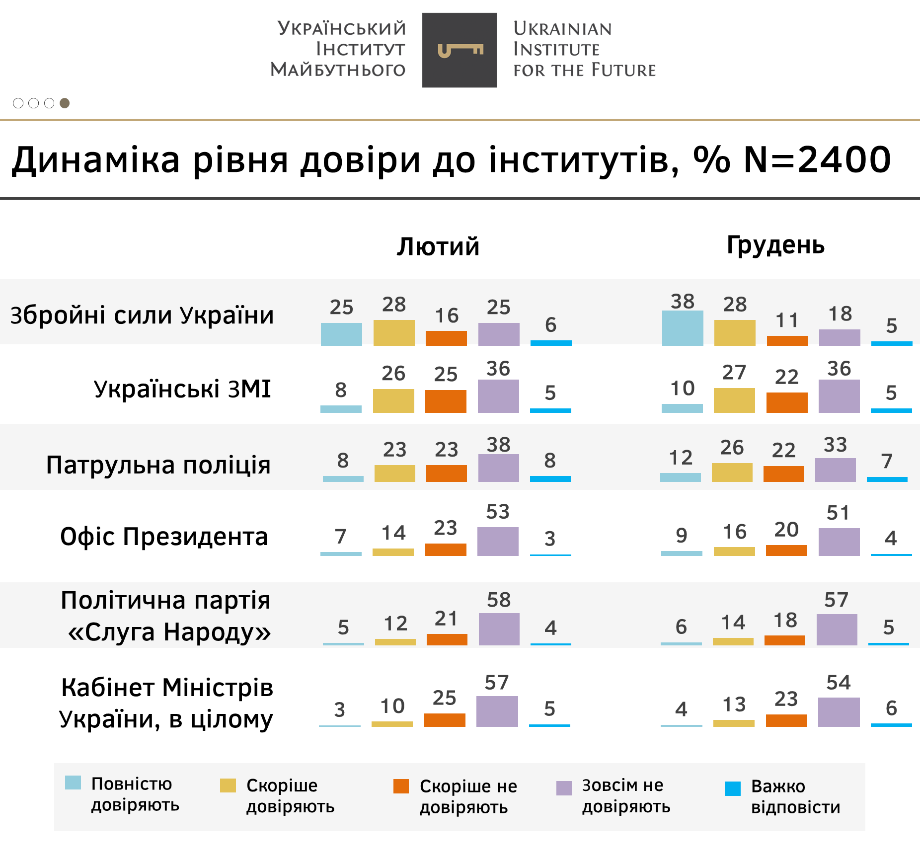 Рівень довіри до органів влади та державних інституцій
