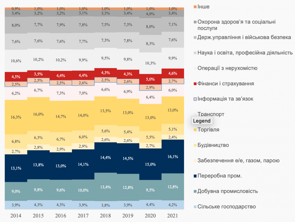 Рисунок 5. Динаміка структури ВВП РФ у 2014-2021 рр. (%)