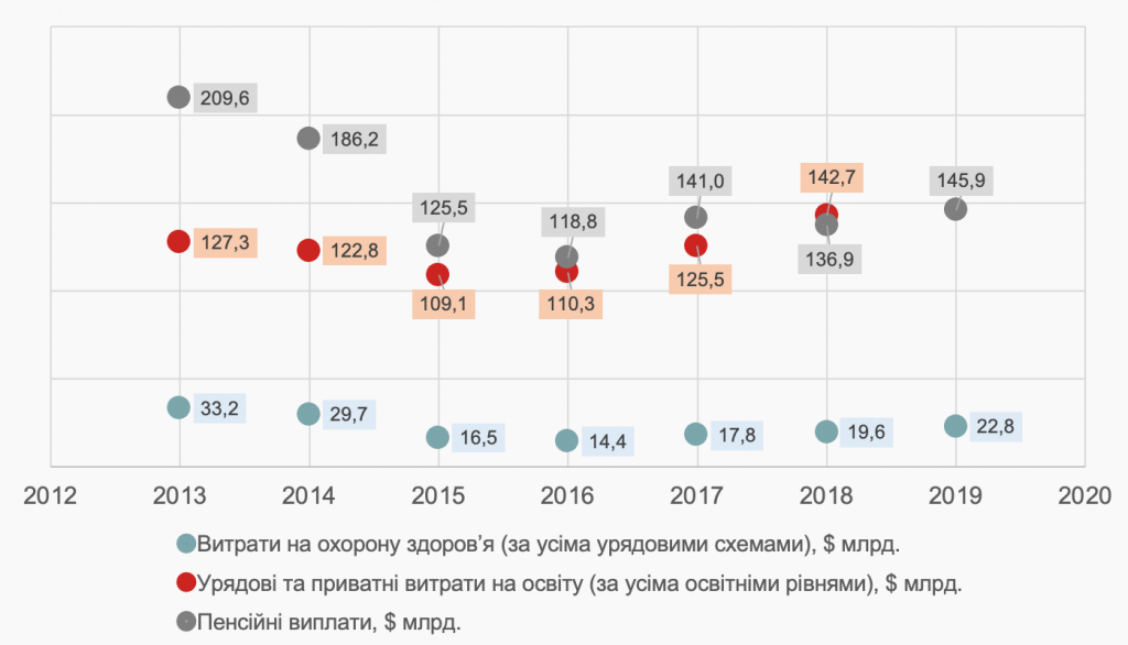 - військові витрати, після падіння їх обсягів у 2014 р. з $84,7 млрд. до