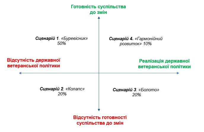 - Все може закінчиться тим, що ветерани стануть залежними від державної допомоги та за рахунок подачок політиків будуть битися одним з одним під прапорами різних популістів. Або ж буде якийсь драйвер, який призведе до зміни настроїв у суспільстві та реалізації Сценарію №1 «Буревісник».