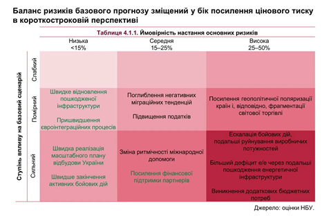 У даному контексті Національний банк України оцінив ймовірність швидкого завершення активних бойових дій, визначивши її на рівні менше ніж 15%