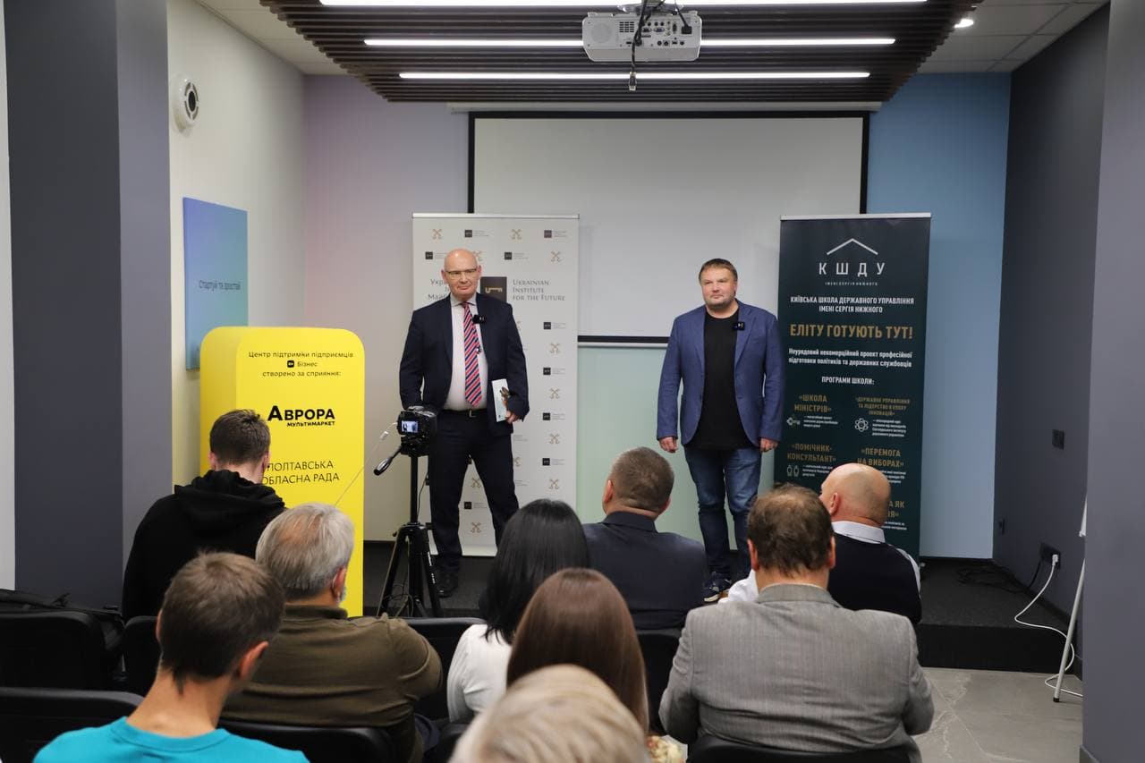 Команда Українського інституту майбутнього дякує Центру підтримки підприємців «Дія.Бізнес» у Полтаві, колективу Бібліотеки філії №4 Полтавської ЦБС, ЗМІ, представникам бізнесу, ГО та усім полтавчанам за плідну дискусію й готовність бути залученими до важливого суспільного діалогу, який УІМ та КШДУ розпочинають в усій Україні!