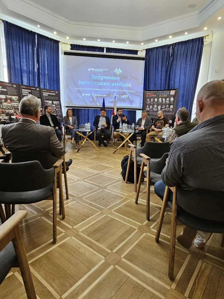 14 травня відбувся міжнародний круглий стіл на тему “ЗАРУЧНИКИ ІМПЕРСЬКИХ АМБІЦІЙ: ПОШУК ШЛЯХІВ ДЛЯ УКРАЇНСЬКО-БІЛОРУСЬКОГО ПОРОЗУМІННЯ”, організований UIF спільно з БФ “Вільна Білорусь”.