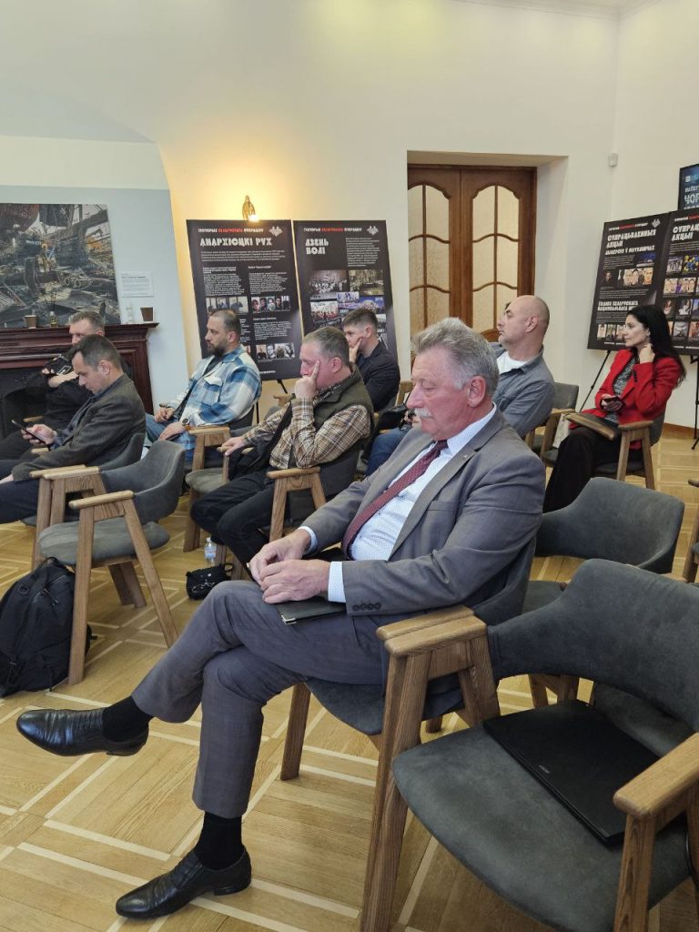 Директор Громадської спілки “Білоруська спільнота України” Олексій Францкевич представив поточну виставку на тему “Історія білоруського супротиву”, організовану фондом у співпраці з білоруськими громадськими ініціативами. Виставка присвячена 30-річчю боротьби білорусів з поглинанням Росією та авторитарним лукашенківським режимом.