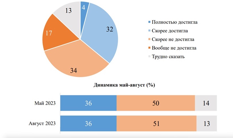 В какой степени Россия, по вашему мнению,достигла целей СВО? (%)