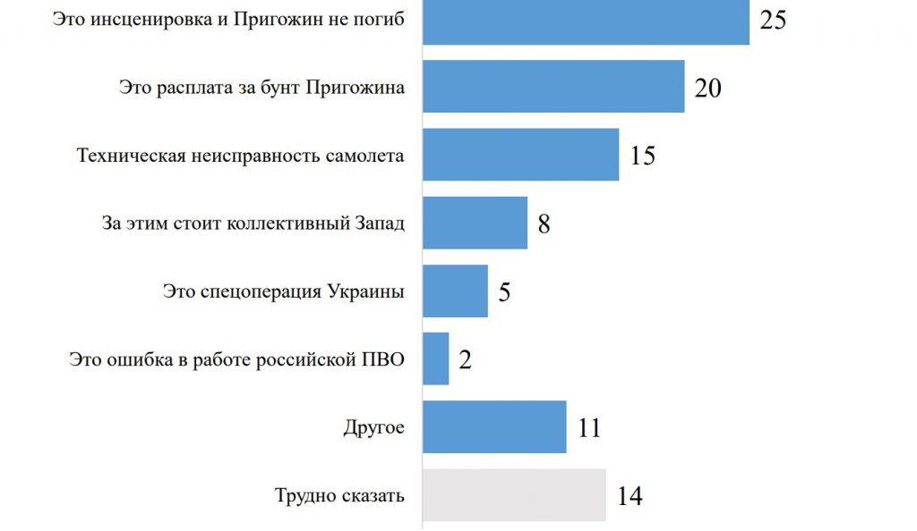 Сейчас обсуждается много версий причин авиакатастрофы, в которой погиб Пригожин, какая из них вам кажется наиболее правдоподобной?
