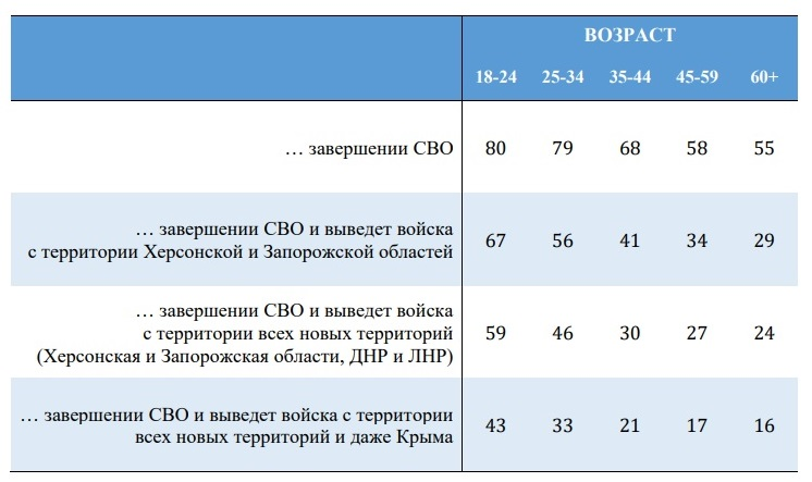 Поддержка разных вариантов завершения СВО