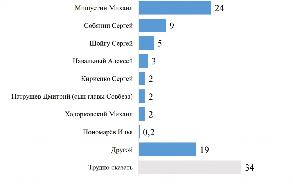 Другие варианты: Бондаренко, Грудинин, Никитин, Зюганов, Миронов, Володин, Воробьёв, Медведев, Загбинов, Кадыров, Лавров, Толстых, Платошкин, Дюмин, Муратов, Прилепин, Рогозин, Нарышкин, Ройзман, Суровикин, Фургал, Фурсов, Шувалов, Шульман, Явлинский, Яшин и др.; должен был быть Пригожин; кого выберет народ на честных выборах; совсем новый человек; нет достойных кандидатов.