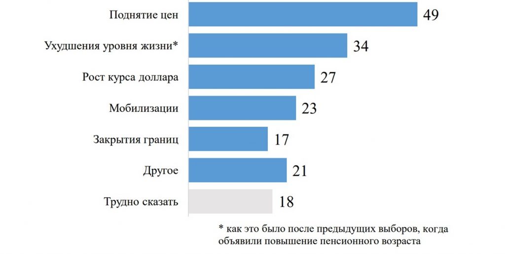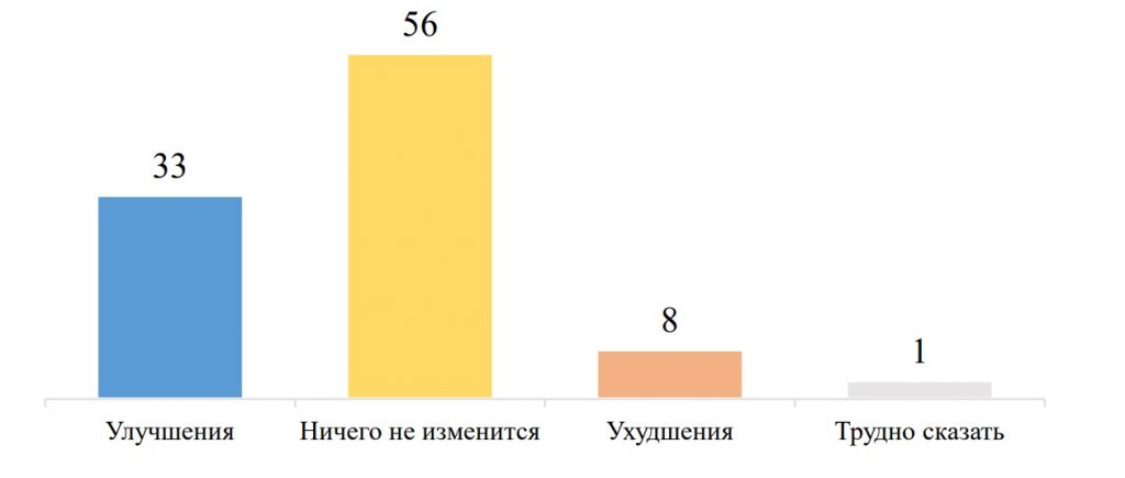 Другие варианты: мало что изменится/кардинальных изменений не будет. Есть надежда на лучшее/только улучшения: повышение зарплат и пенсий,снижение пенсионного возраста,стабилизация рубля, развитие экономики, новые рабочие места, строительство, стабильность, завершение войны / СВО. Будет только хуже: невыплата зарплат и пенсий(вариант — отмена пенсий), рост коммунальных тарифов, инфляция, дефолт, «возвращение 90-х», нестабильность, ужесточение режима и политические репрессии,ухудшениеотношений сдругими странами, продолжение СВО, ухудшение жизни вцелом.