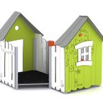 Фасады оформлены в фирменном стиле серии HUT — с декоративными рисунками, округлыми окошками и мягкой цветовой палитрой (зеленый, белый, серый, оранжевый). Такое оформление привлекает детей, вызывает интерес и стимулирует фантазию. С внешней стороны есть декоративное игровое иллюминаторное окно, которое добавляет еще больше сюжетных возможностей.