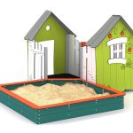 Игровой комплекс HUT-07 — двойной домик с песочницей 2000×2000 мм, зоной для творчества и отдыха