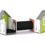 Дизайн модуля приятный и гармоничный: зеленый, серый и белый цвета с яркими акцентами делают конструкцию привлекательной для детей, но одновременно универсальной для любой среды — будь то городской парк, садик, двор многоэтажки или частная площадка на территории заведения. Визуально комплекс выглядит как настоящие игрушечные домики, в которых хочется оставаться подольше, фантазировать, общаться и взаимодействовать с другими детьми.