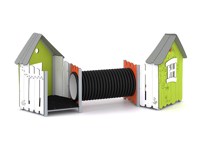 Игровой комплекс HUT-09 — это двойной домик с туннелем, созданный специально для того, чтобы обеспечить детям комфортное, увлекательное и безопасное пространство для игры и развития. Конструкция состоит из двух компактных домиков, соединенных между собой пластиковым гофрированным тоннелем, который добавляет игре элемент приключения, исследования и активности. Один из домиков оборудован встроенными скамейками и столиком — идеальным местом для отдыха, ролевых игр, настольных занятий или простого детского общения.