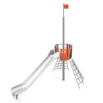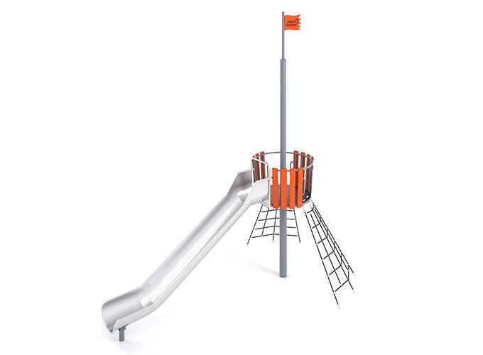 Пиратская мачта с горкой из нержавеющей стали — идеальный игровой комплекс для детской площадки, сочетающий в себе канатный подъем и смотровую платформу для самых смелых маленьких исследователей.