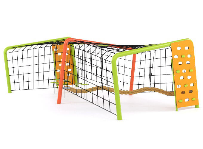 Дети могут подниматься по сеткам, балансировать на канате толщиной 150 мм, преодолевать изогнутые натяжные элементы, проходить в середине каркаса, имитирующего тоннель, или карабкаться по наклонным фанерным стенам с прорезями. Каждый из этих маршрутов направлен на развитие баланса, мелкой моторики, координации и уверенности в собственном теле. Пребывание на этой конструкции не требует большой скорости или силы — здесь важна ловкость, осторожность и точность, что делает ее безопасной, но в то же время увлекательной для детей всех возрастов.