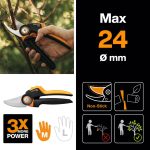 - Подходит для обрезки свежих веток диаметром до 24 мм
