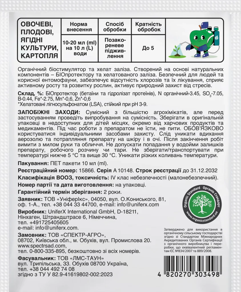 • Органический биостимулятор: Безопасен для людей и полезной энтомофауны.