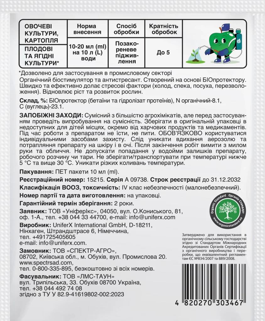 До 5 | Протягом всієї вегетації перед або після стресу: температурний | 10-20 мл на 10 л води |