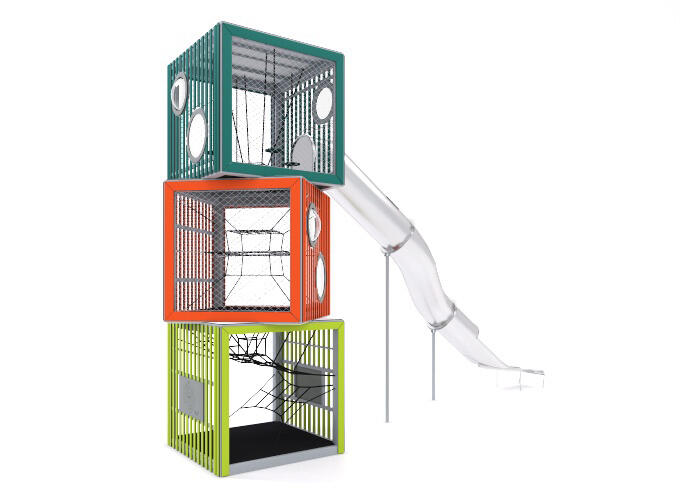 Ігровий комплекс KUB 3шт з тунельною гіркою НЖ чудово підходить для розвитку фізичних навичок, тренування спритності, сили, витривалості та координації. Різноманітні рівні та маршрути у вежах стимулюють уяву та вчать дітей долати перешкоди разом, розвиваючи дружбу та взаєморозуміння.
