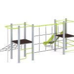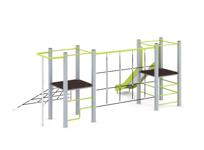 Висота платформ у комплексі становить 900 мм — це оптимальний рівень, щоб діти почувалися комфортно та безпечно. Цей комплекс чудово підходить для дитячих садків, шкіл, парків та житлових дворів, створюючи надійне середовище для активних ігор та розвитку.
