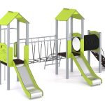 Комплекс виготовлений з якісних та довговічних матеріалів — металу та пластику HDPE, які стійкі до будь-яких погодних умов і щоденного використання. Висота платформ 900 мм робить комплекс безпечним та зручним для дітей різного віку.