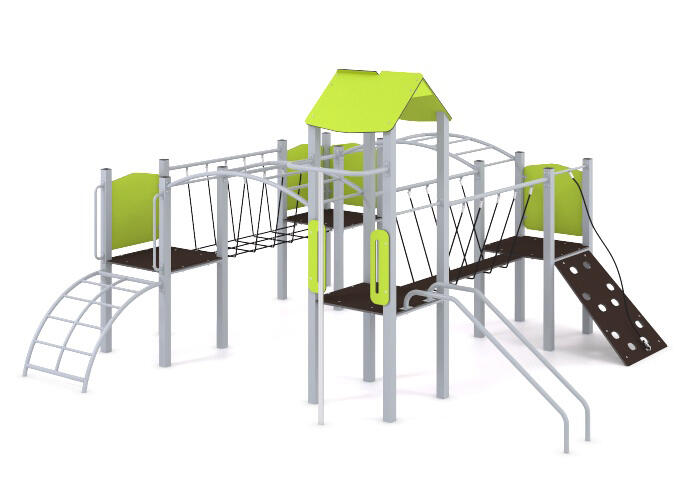 У комплексі передбачені драбинка та пандус, які дають змогу дітям підніматися на платформу, обираючи свій улюблений маршрут, а містки відкривають нові простори для досліджень та командних ігор. Це формує навички взаємодії, спілкування та соціалізації.