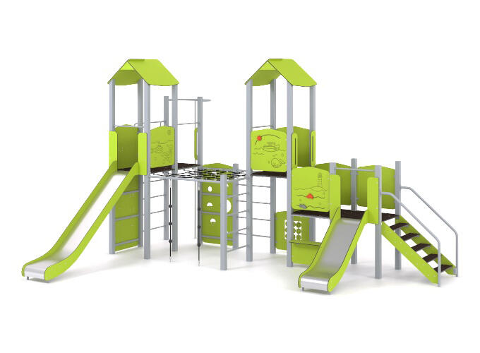 У конструкції комплексу поєднано гірки висотою Н-900 мм і Н-1500 мм, які дарують дітям справжнє відчуття польоту та радість від руху. Це чудовий спосіб розвивати сміливість, координацію та впевненість у собі. Додаткові пожежний спуск і різні сходи та драбинки урізноманітнюють маршрути для підйому, дозволяючи дітям обирати власний стиль гри та вдосконалювати фізичні навички.