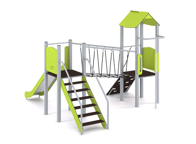 Комплекс має платформи на висоті 900 мм і 1200 мм, що робить його доступним і безпечним навіть для найменших користувачів. Така багаторівнева структура надихає на дослідження та пригоди, одночасно забезпечуючи безпечне середовище для кожного малюка.