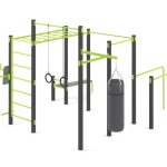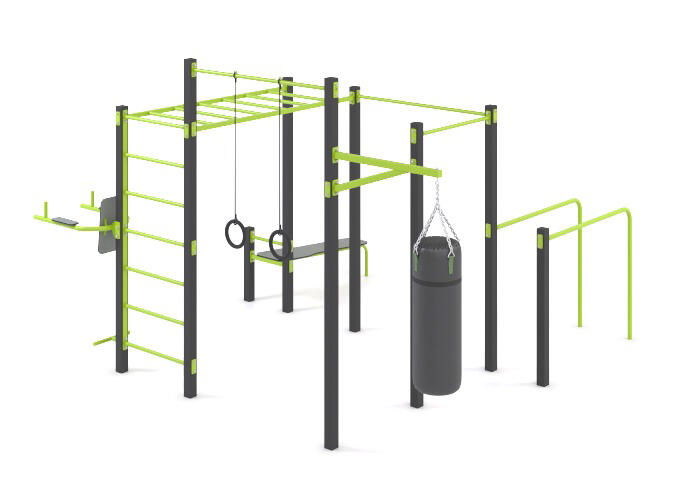 Виготовлений із надійного металу та міцного пластику HDPE, комплекс підходить для використання на вулиці або у приміщенні. Усі елементи витримують значні навантаження, стійкі до погодних умов та інтенсивного використання. Завдяки болтовому з’єднанню, конструкція міцно фіксується та залишається стабільною під час тренувань.
