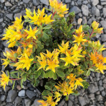 Кущ низький, розлогий, заввишки до 15 см, з м’ясистими овальними листками. Навесні і влітку листя яскраво-зелене, восени — червоніє, надаючи клумбі теплих барв. Цвітіння починається в червні та триває до серпня: рослина вкривається дрібними зірчастими квітками насиченого жовтого кольору.
