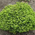Цей сорт росте повільно, утримуючи максимально компактні розміри — приблизно 30–50 см заввишки і до 60 см завширшки у дорослому віці. Завдяки такому розміру і природній геометричній формі він чудово зберігає свою декоративність без стрижки. Молоді прирости світліші, що створює красивий м’який контраст і робить рослину дуже ефектною навесні й на початку літа. Хвоя коротка, насичено-зелена, м’яко прилягає до гілочок, формуючи щільну текстуру, яку хочеться роздивлятись зблизька.