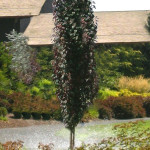Форма крони — справжня візитівка цього дерева. Слива колоновидна Crimson Pointe має чітко вертикальну, вузьку форму, яка з віком зберігає свій акуратний силует. Дерево росте рівномірно, утворюючи струнку колону заввишки 3–5 метрів при ширині всього 1–1,5 метра. Така компактність дозволяє висаджувати його навіть у невеликих садах, уздовж доріжок, у парадних зонах або для створення живих скульптурних акцентів. Колоновидна крона чудово поєднується з сучасними стилями дизайну, мінімалізмом та архітектурними композиціями.