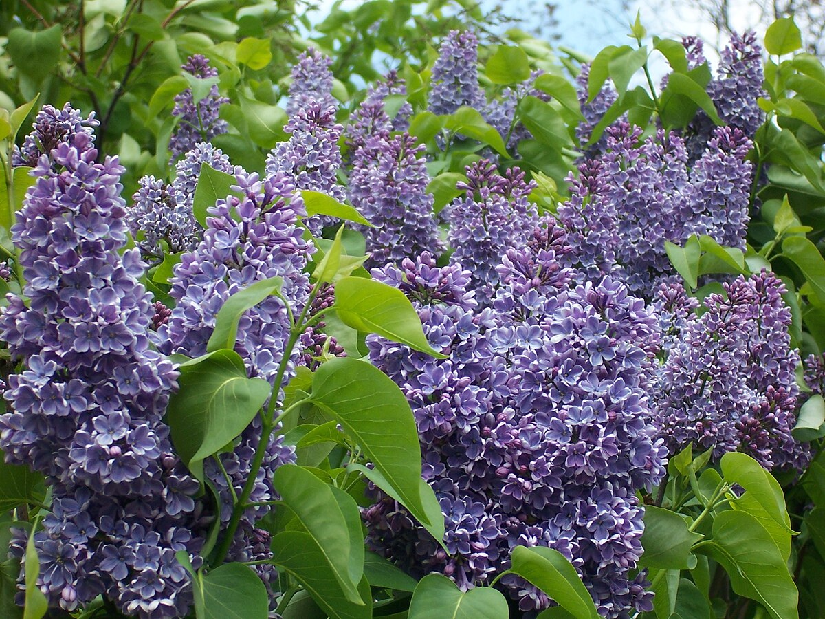Головна окраса Syringa vulgaris — це, звичайно, його цвітіння. Наприкінці весни кущ вкривається великими, щільними волотями фіолетових квітів різної інтенсивності — від класичного бузково-фіолетового до глибоких пурпурних відтінків. Квіти дрібні, зібрані у пишні суцвіття, які виглядають дуже ефектно навіть здалеку. Цвітіння зазвичай триває кілька тижнів і супроводжується сильним, приємним ароматом, який наповнює весь сад.