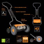 На 40% легше штовхати: Унікальна конструкція робить косіння на 40% легшим порівняно з іншими шпиндельними газонокосарками, зменшуючи втому під час роботи.